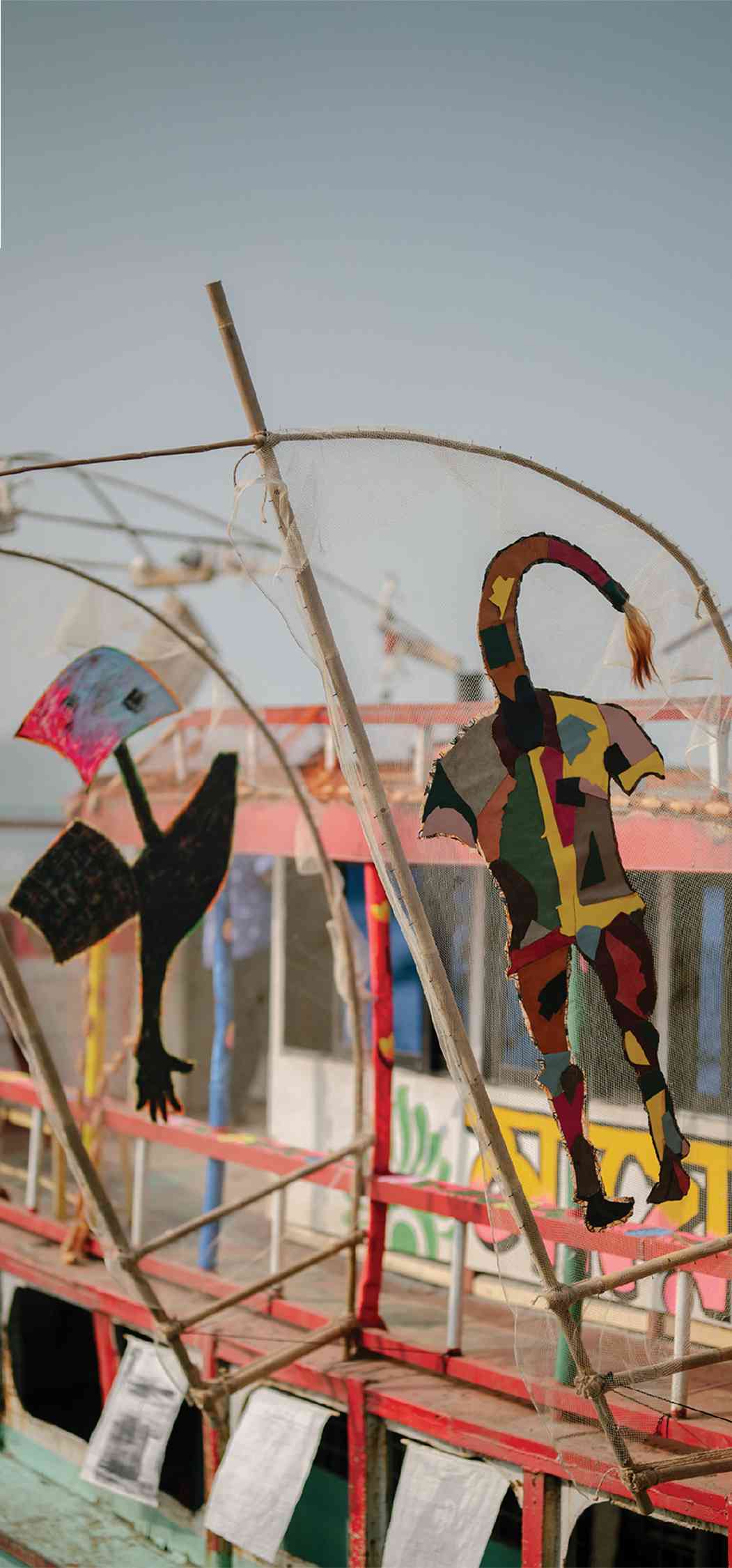 The sail has long been more than just a tool of navigation – it is a symbol of movement, of journeys taken, of destinies intertwined. It is not merely a tensile structure of fabrics stitched together, but a weaving of thoughts, histories, and inheritances. Land, water, and air – three fundamental elements of existence – come together through collaboration on creating the sails, reflecting the delicate balance between survival and spirituality, between nature and human intervention. The land nurtures and provides, the river connects and carries, and the air sustains and moves. This interplay mirrors the relationship between people and their environment, where traditions, livelihoods, and beliefs have long been shaped by the river’s embrace.