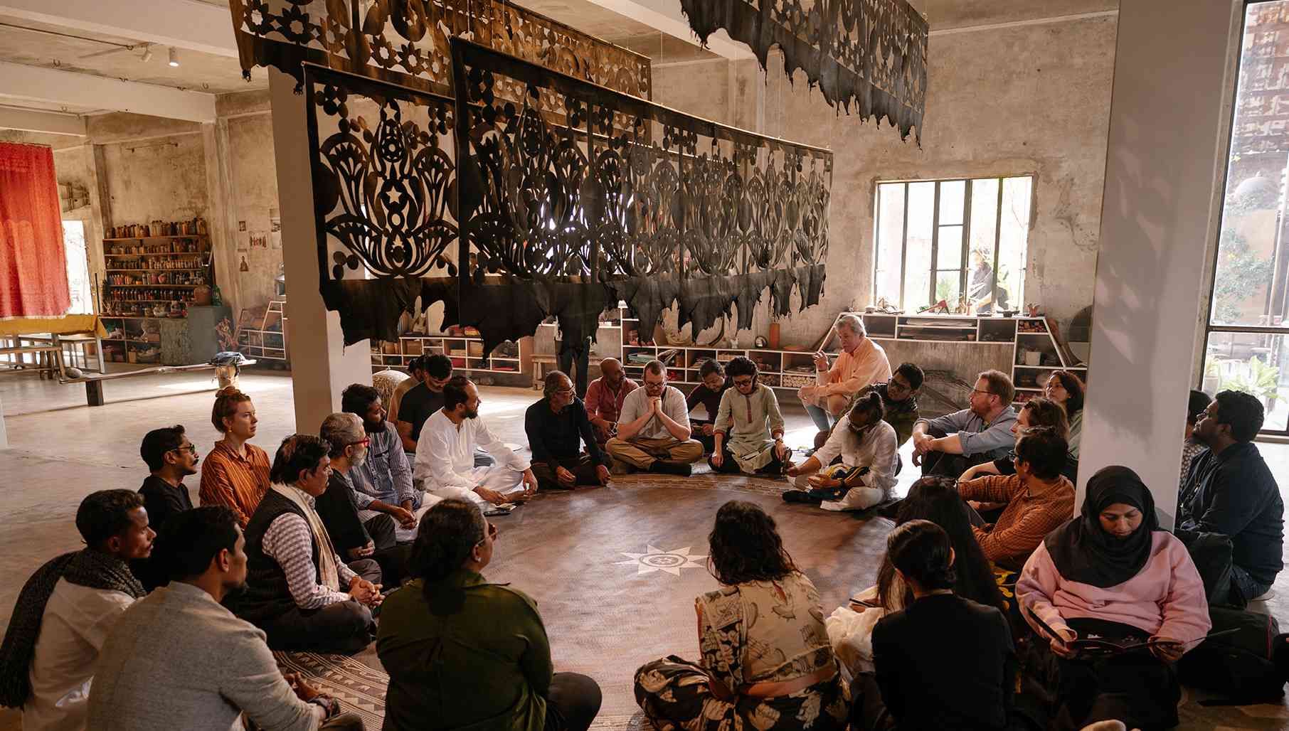 বৈঠক / Baithak, a gathering space for social exchange, invites visitors to sit